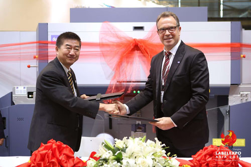 10:30分富士施樂及Durst戰略聯盟簽約儀式暨新品發布會在其展臺內(K1展位)內隆重舉行,協會代表到場祝賀。